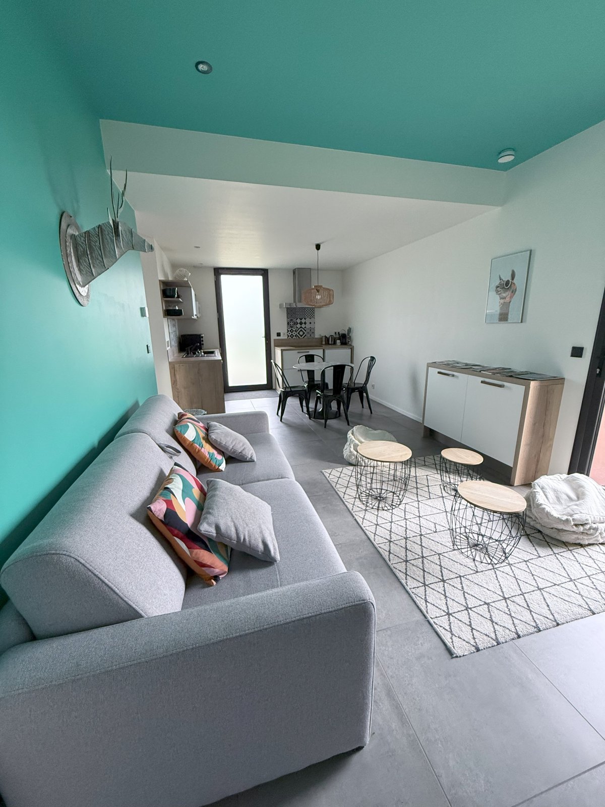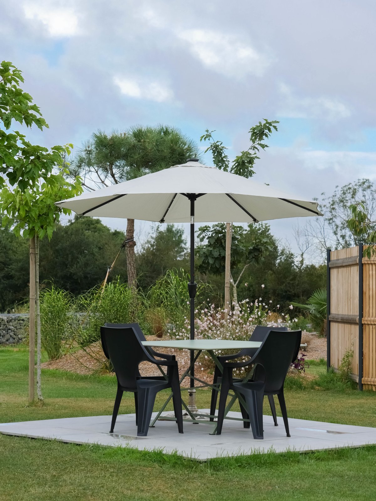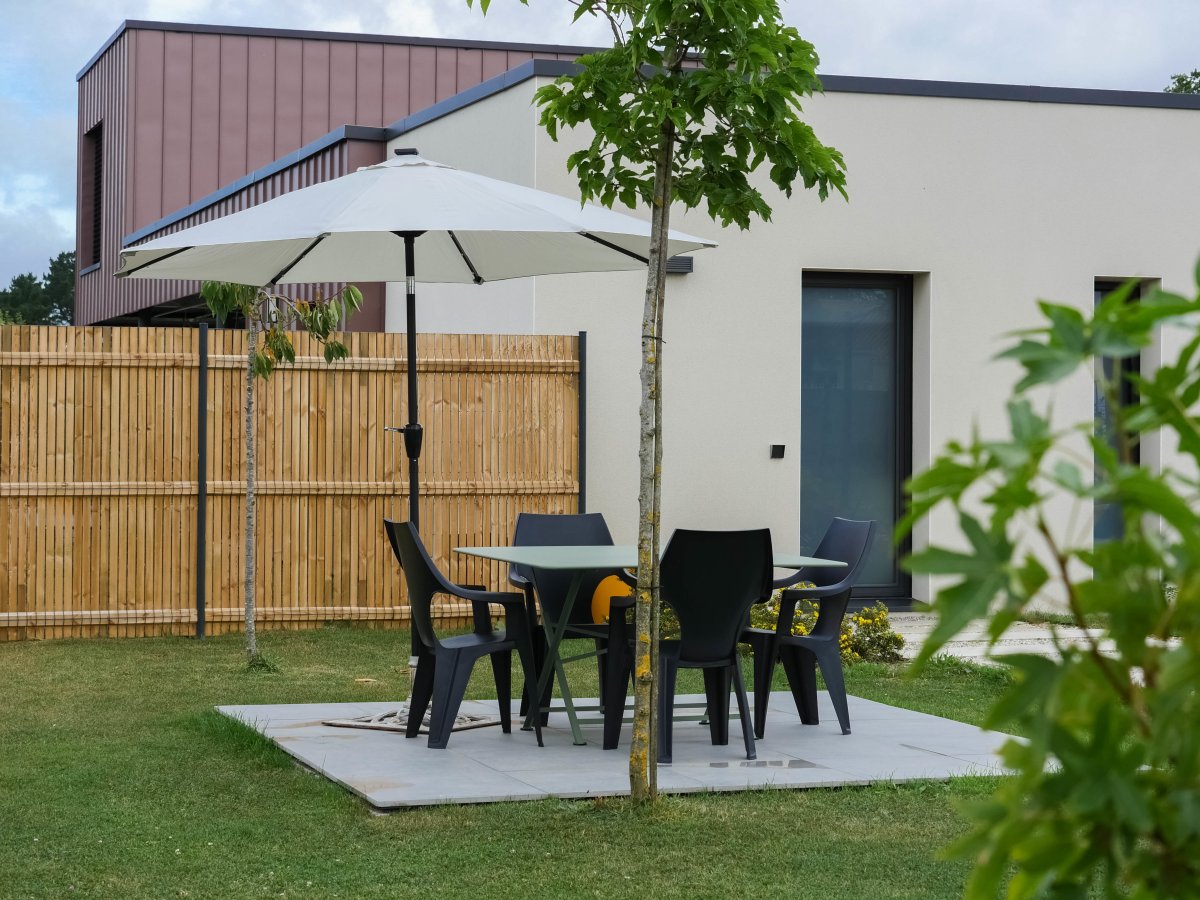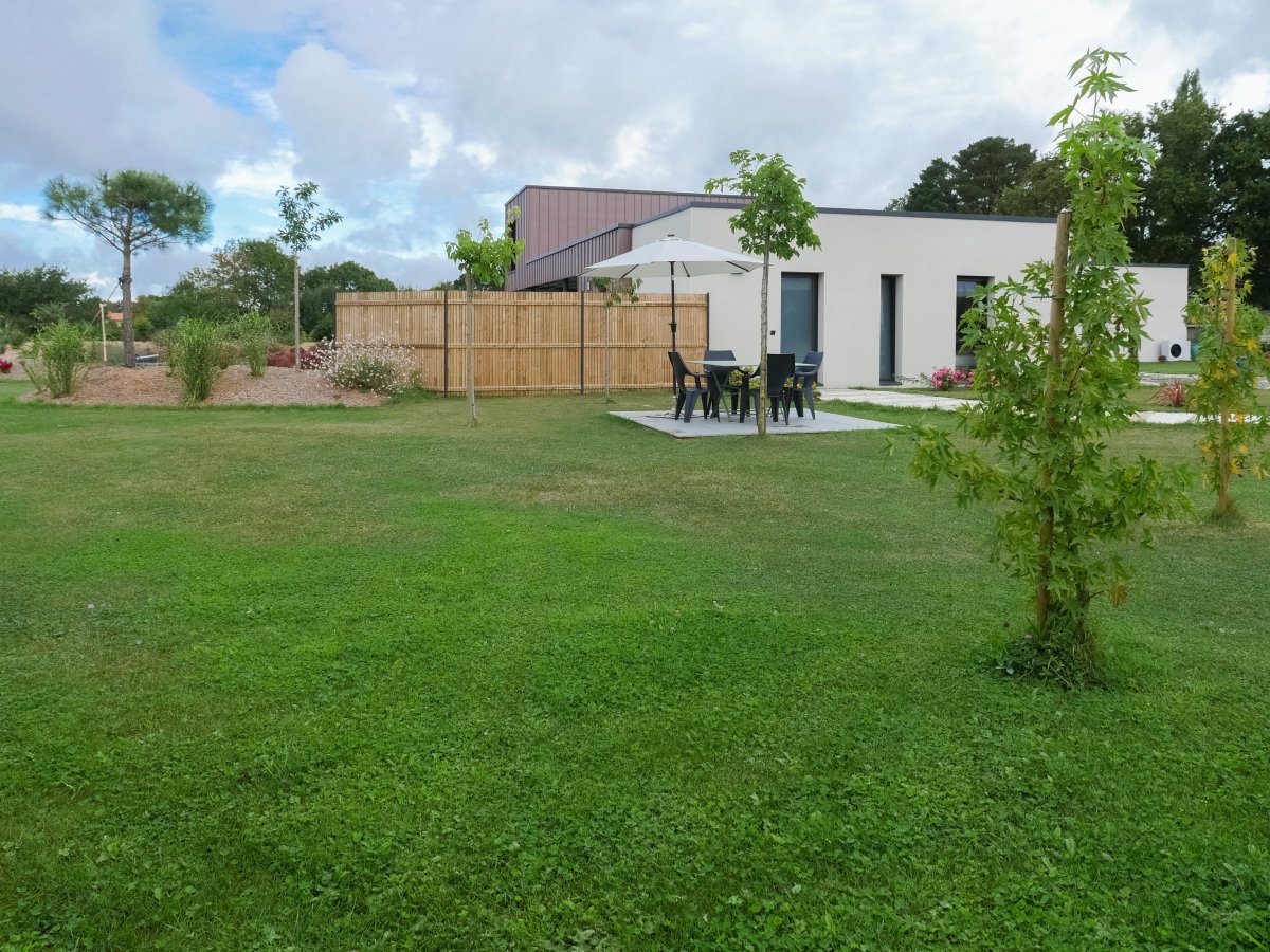 Maison neuve, moderne avec tous les équipements nécessaires pour un séjour réussi disposant d'un jardin et d'une terrasse aménagée avec mobilier.